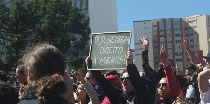 Do final da manhã para início da tarde, a Rede Macuco acompanhou a mobilização em Curitiba. Na capital paranaense, milhares de trabalhadores e estudantes de diversas categorias do serviço público e de empresas privadas se concentraram na Praça Nossa Senhora da Salete, no Centro Cívico, e horas depois seguiram em passeata até a Praça Tiradentes, à porta da Catedral, no Centro da Cidade.