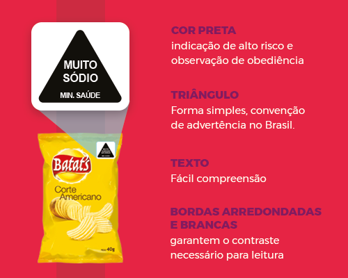 Bortoletto ainda ressalta que o símbolo apresenta algumas vantagens como o fato de ser uma forma que não perde a percepção em tamanho reduzido. Além disso, o triângulo já é conhecido como uma advertência no Brasil, devido a rotulagem de alimentos transgênicos, e a cor utilizada possui um melhor contraste e destaque em relação aos demais elementos da embalagem.