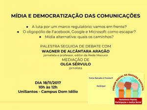 Uma dessas atividades será uma mesa com a Rede Macuco que, por meio deste jornalista vai falar sobre mídia e democratização das comunicações.
