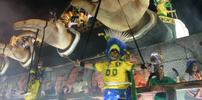 E, no final, uma ala e um carro alegórico mostraram que a retirada dos direitos laborais é fruto do golpe de 2015, financiado pelo grande capital. O presidente ilegítimo Michel Temer veio representado na figura de um homem vampiro; os patos amarelos e os paneleiros que foram às ruas engrossar (ainda que muitos sem ter noção do papel desempenhado) o movimento golpista também foram retratados.