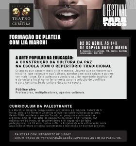 E ainda palestras de formação de público: