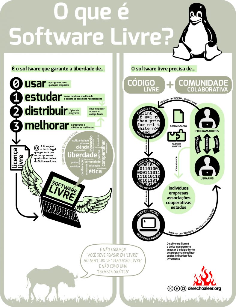 Software livre. Em outras palavras, programas de computador que podem ser modificados por qualquer usuário, porque são de código aberto. Mais seguros (porque são mais imunes a vírus), menos invasivos (não se utiliza da política “chupa dados”) e que dá mais autonomia aos usuários.