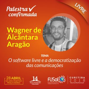A Rede Macuco, por meio do editor geral Wagner de Alcântara Aragão, vai participar do Flisol em Curitiba, na Universidade Positivo (Unidade Praça Osório), com a palestra “O software livre e a democratização das comunicações”.