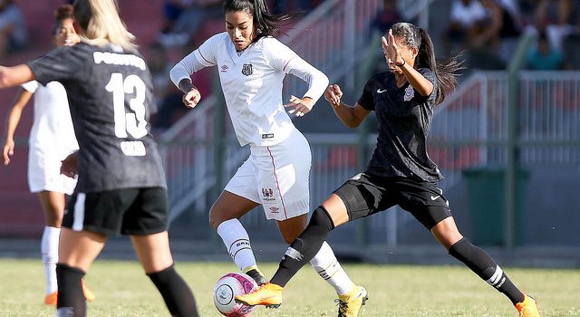 Imagem em destaque: Brena, das Sereias da Vila (Santos F.C.), atuais campeãs brasileiras. Foto de Pedro Ernesto Guerra Azevedo/Santos F.C.