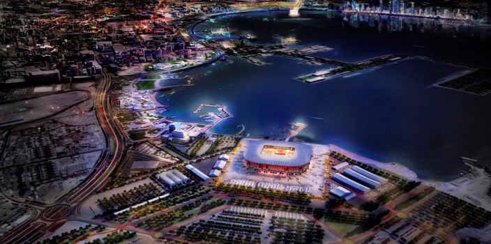 Imagem em destaque: projeção do Ras Abu Aboud Stadium | Divulgação Fifa