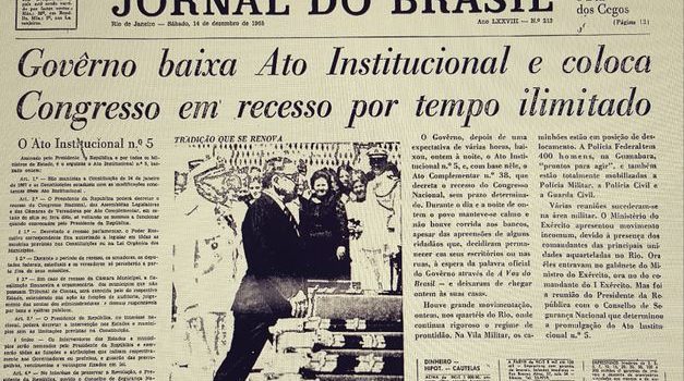 Imagem em destaque: capa do Jornal do Brasil sobre o AI-5, que representou o recrudescimento da ditadura