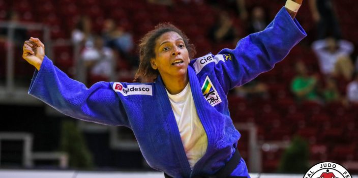 Imagem em destaque: Rafaela Silva, que estará em Canoas, após conquistar o ouro no Grand Prix de Budapeste, 10 de agosto. Foto de Gabriela Sabau