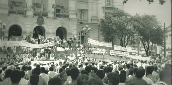 Imagem em destaque: mobilização popular em frente à Prefeitura de Santos, em 28 de fevereiro de 1991. Não foi possível identificar a autoria da foto