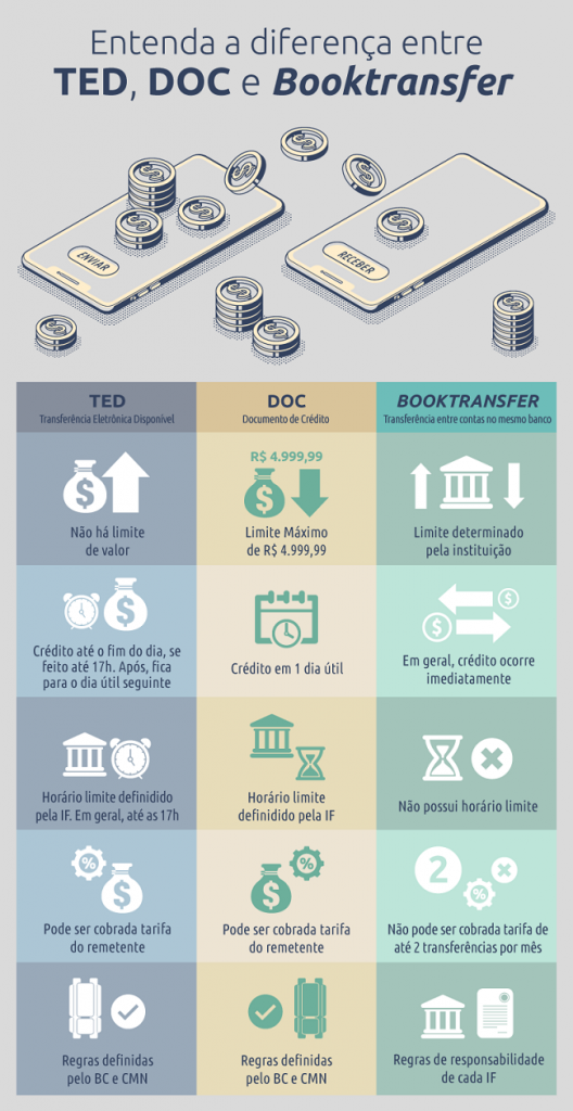 Muita gente não sabe a diferença entre elas e se confunde na hora de utilizá-las. Por isso o Banco Central publicou recentemente lista de perguntas e respostas sobre transferências entre contas. Conheça um pouco sobre as três modalidades: