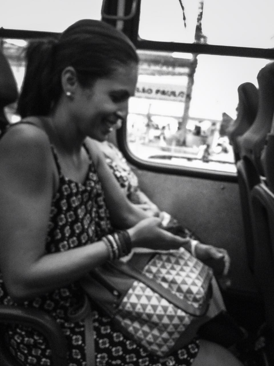 Dentro do ônibus, os passageiros formavam uma filinha indiana sentados. Puramente brasileiro. Fiz o quê? Tirei uma foto.