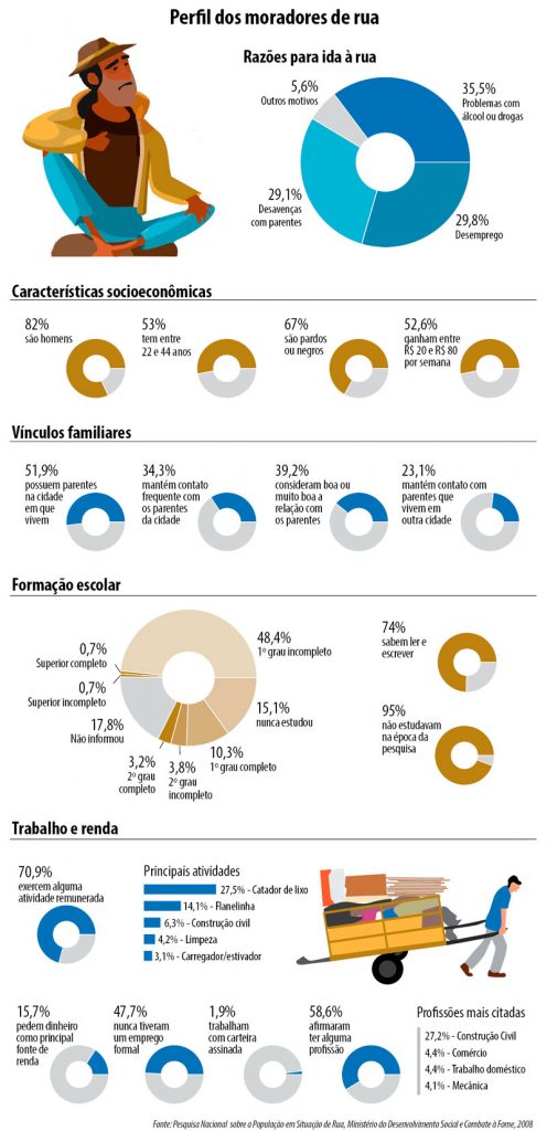 Graças a esse estudo, foi possível traçar um perfil heterogêneo da população de rua levando em conta idade, gênero, cor da pele, formação escolar, razões da ida para rua.