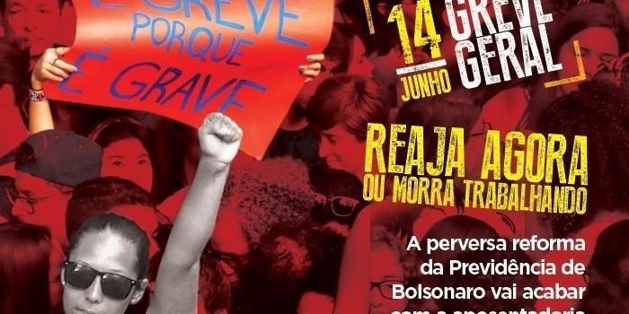 Imagem em destaque: arte de divulgação da greve geral contra a reforma da Previdência