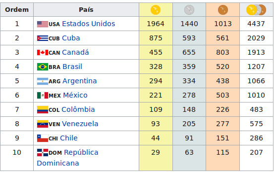 Lideram o quadro geral de medalhas da história dos Jogos Pan-Americanos.