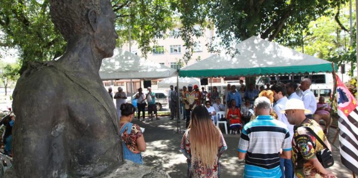 Imagem em destaque: busto de Zumbi dos Palmares na Praça Palmares, onde ocorre boa parte das atividades do Dia da Consciência Negra em Santos. Foto: Susan Hortas