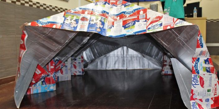 Uma espécie de barraca com tetra pak, reproduzindo a arte do origami, é a solução encontrada pelos jovens para proteger desabrigados em Curitiba.