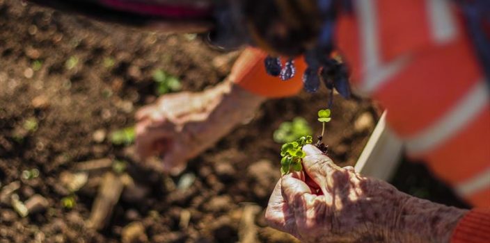 Imagem em destaque: mãos que cultivam horta em quintal. Foto de Daniel Castellano/Prefeitura de Curitiba