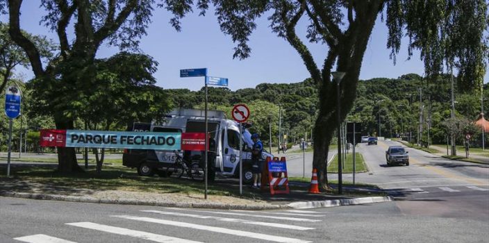 Imagem em destaque: Parque Barigüi, em Curitiba, fechado, para evitar aglomerações. Foto de Pedro Ribas/Prefeitura de Curitiba