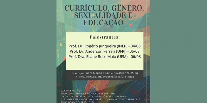 Professores do Departamento de Educação do Centro de Educação, Comunicação e Artes da Universidade Estadual de Londrina (UEL), por meio do Programa de Pós-graduação em Educação, promovem entre os dias 4 e 6 de agosto o 1º Simpósio: Currículo, Gênero, Sexualidade e Educação.