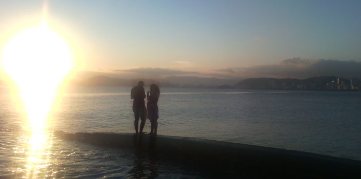 Imagem em destaque: casal ao por do Sol nas praias de Santos. Foto de @waasantista