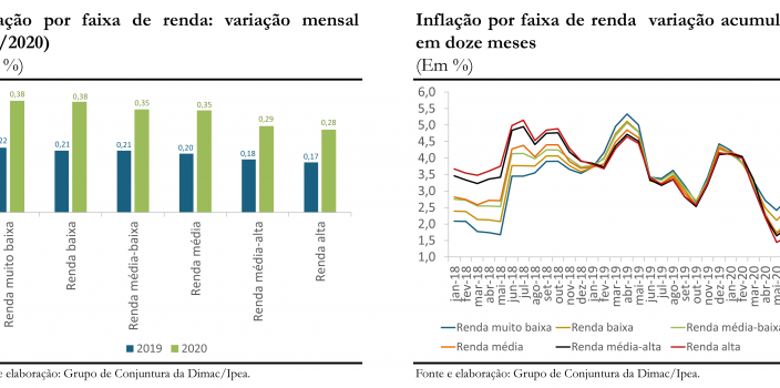 Imagem em destaque: gráficos comparando alta do custo de vida para pobres e ricos. Por Ipea