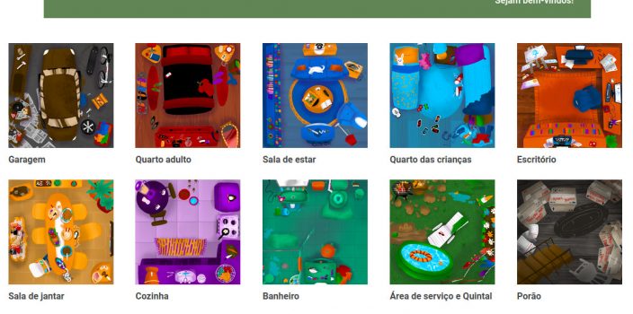 Imagem em destaque: mosaico com os cômodos da mostra “Objetos que Aproximam: Dentro de Casa”