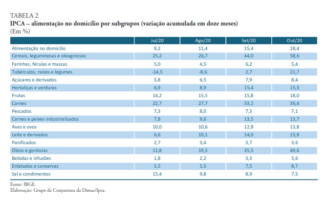 Imagem em destaque: projeções da inflação, por itens. Divulgação Ipea