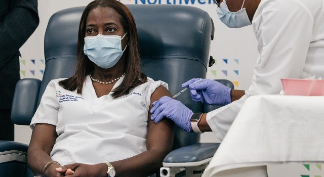 Imagem em destaque: a enfermeira Sandra Lindsay, de Nova Iorque, Estados Unidos, recebe vacina contra o novo coronavírus. Foto de Scott Heins / Divulgação Governo de Nova Iorque/ Fotos Públicas