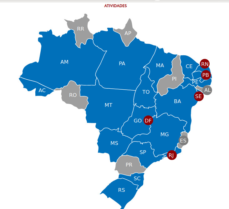 Clique sobre o mapa para conferir eventos sobre o centenário de Paulo Freire