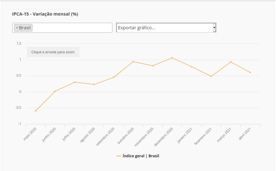 O Índice Nacional de Preços ao Consumidor Amplo 15 (IPCA-15), a prévia da inflação oficial, ficou em 0,6% em abril.