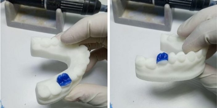 “O projeto hoje encontra-se em fase de testes. Estou realizando teste de fresagem em outros tipos de materiais, como o polimetilmetacrilato (conhecido pela sigla PMMA, utilizado para confeccionar próteses provisórias), e a zircônia (uma pedra sintética que imita o diamante). Estamos fazendo ajustes para melhorar a qualidade e diminuir o tempo de usinagem”, explica.