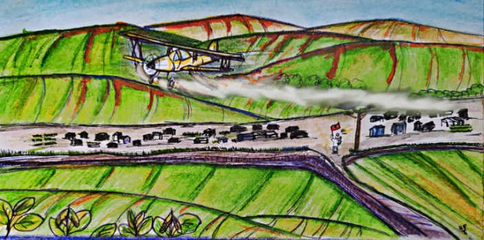 Imagem em destaque: arte do Movimento dos Trabalhadores Rurais Sem Terra (MST), ilustrando a prática da pulverização de agrotóxicos atingindo as pessoas.