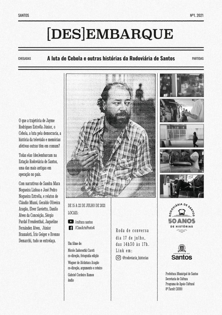 O que a trajetória de Jayme Rodrigues Estrella Júnior, o Cebola, a luta pela democracia, a história da televisão e memórias afetivas outras têm em comum? Todas elas (des)embarcam na Estação Rodoviária de Santos, uma das mais antigas em operação no país. Com narrativas de Sandra Mara Nogueira Lisboa e José Pedro Nogueira Estrella, e relatos de Cláudio Mussi, Geraldo Oliveira Aragão, Elver Savietto, Danilo Alves da Conceição, Sérgio Pardal Freudenthal, Jaqueline Fernández Alves,  Júnior Brassaloti, Íris Geiger e Brenno Demarchi, tudo se entrelaça.