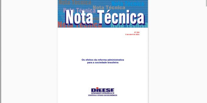 Imagem em destaque: reprodução da página inicial da Nota Técnica do Dieese sobre os efeitos nefastos da “reforma” administrativa.