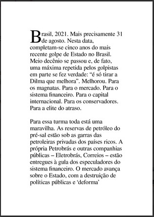 Um comentário sobre "Cinco anos do golpe: livro de bolso relembra as raízes do Brasil de 2021"