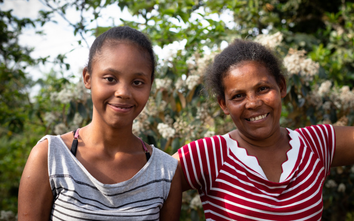 Fia, com a mãe Zélia, enquanto relembrava o seu início na Rede de Sementes. Foto: Bianca Tozato/ISA