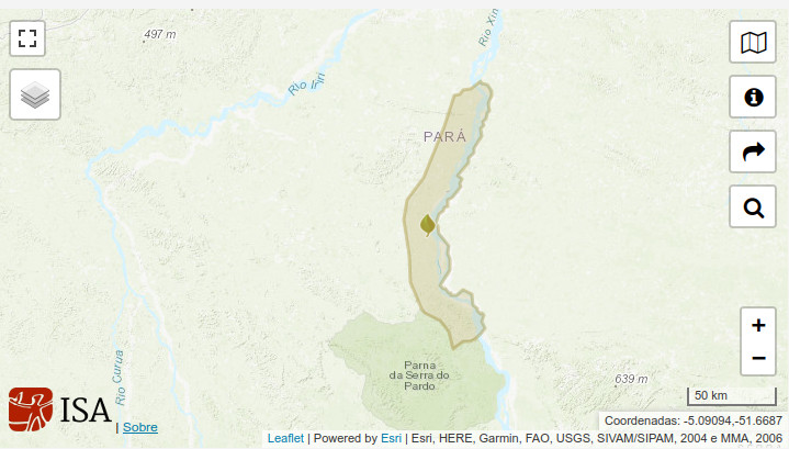 Às costas e ao norte, a Estação Ecológica da Terra do Meio. Ao sul, o Parque Nacional do Rio Pardo.