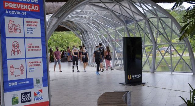 Imagem em destaque: alerta para medidas de prevenção contra a covid-19, no Parque do Utinga, em Belém. Foto: Governo do Pará.
