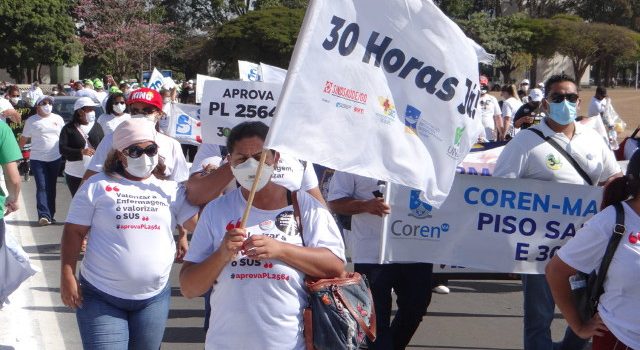 Imagem em destaque: ato, em Brasília, ano passado, de profissionais de Enfermagem pela jornada de 30 horas. Foto: Sindsaúde-GO