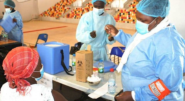 Imagem em destaque: posto de vacinação em Angola, em ginásio. Foto: divulgação Governo de Angola