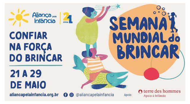 Imagem em destaque: arte de divulgação da Semana Mundial do Brincar. Divulgação Aliança pela Infância