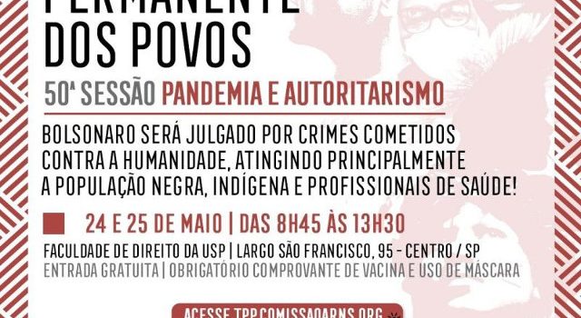 O Tribunal Permanente dos Povos (TPP) realiza nesta terça, dia 24, e quarta, dia 25, o julgamento do atual presidente do Brasil, Jair Bolsonaro, por crimes contra a humanidade cometidos na condução da pandemia de covid-19 e por ataques contra minorias e ameaças à democracia brasileira.