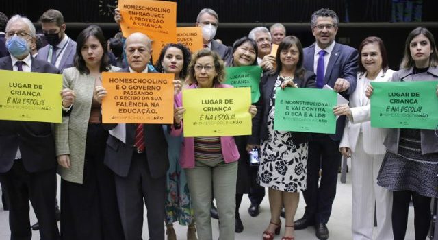 Imagem em destaque: parlamentares de oposição ao atual governo, defensor do ‘homeschooling’, protestam no plenário da Câmara dos Deputados. Foto: Agência Câmara