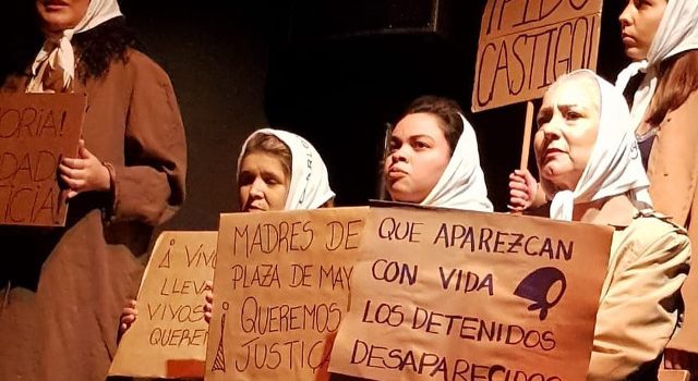 O livro base do trabalho reúne textos dramatúrgicos de autores e autoras argentinas, em homenagem às Mães da Praça de Maio. Traz seis histórias, reais, de luta dessas mães por respostas sobre o desaparecimento de seus filhos e filhas, perseguidos pela ditadura que assolou a Argentina entre os anos de 1970 e 1980.