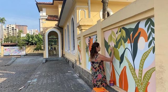 Imagem em destaque: mural na área externa da Estação da Cidadania de Santos, sendo finalizado para a Semana de Arte Transmoderna 2022. Foto: divulgação Fórum da Cidadania de Santos