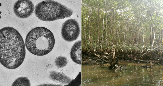 Imagem em destaque: reprodução de imagem da bactéria, e registro de mangue em Cubatão. Foto: Jornal da USP