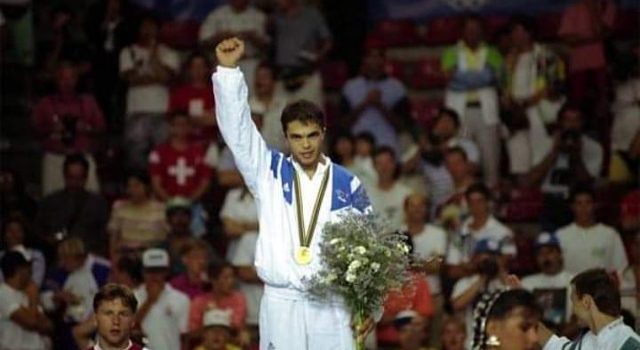 O ouro do santista Rogério Sampaio veio em 1º de agosto de 1992. Hoje diretor-geral do COB, o então judoca disputava a categoria meio-leve.