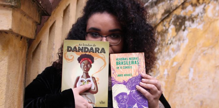 Imagem em destaque: Jarid Arraes e duas de suas obras. Foto: divulgação da autora