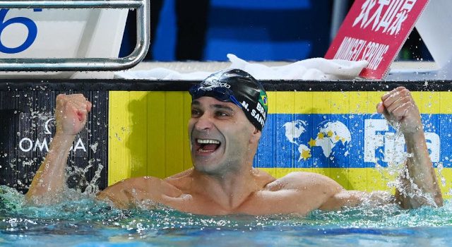Aos 42 anos, ele conquistou a medalha de ouro dos 50m borboleta. Esse foi o quarto título do brasileiro em Mundiais.