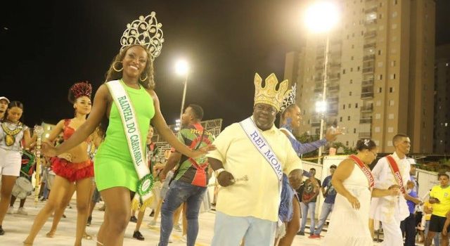 Imagem em destaque | Corte carnavalesca de Santos abre a Passarela do Samba Dráuzio da Cruz. Foto de Raimundo Rosa/Prefeitura de Santos