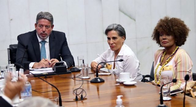 Imagem em destaque: as atrizes Glória Pires e Isabel Fillardis, em reunião com Arthur Lira. Foto: Marina Ramos/Câmara dos Deputados